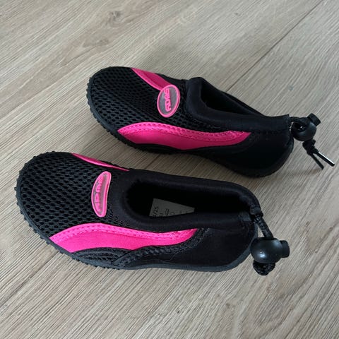 Brukt kun én gang: Rock padlesko/våtsko sko i grå og svart farge. Designet for bruk i vannaktiviteter med gummisåle og neoprenmateriale for fleksibilitet og beskyttelse.