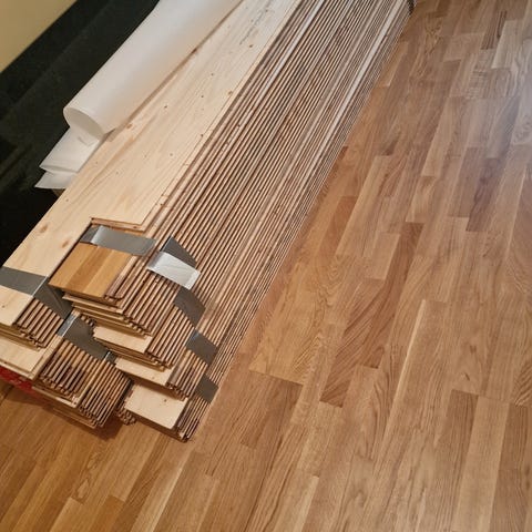 Overskudd etter at jeg har lagt gulv i egen leilighet selges. Litt over to pakker - tilsvarer ca. 7,5 kvm.