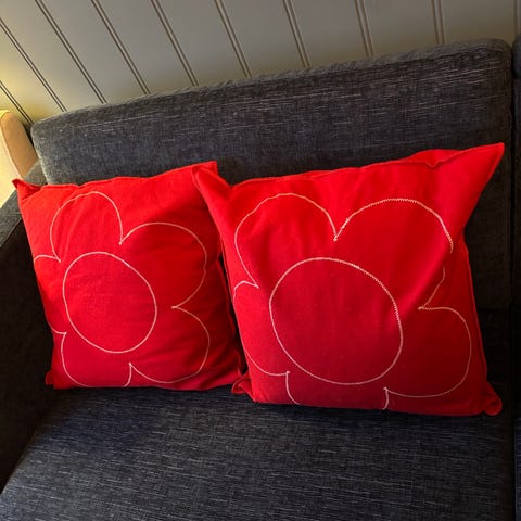 2 putetrekk 40x40cm, 2 løpere i 120cm lengde, 1 duk 85x85cm og 1 bordbrikke 35x50cm. Som ny, det meste ikke brukt. Selges 250,-kr