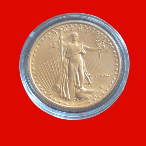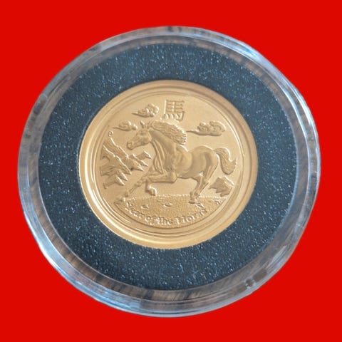 Tavex har faste priser på både kjøp og salg av disse myntene, og de kjøper mynten for kr 7953,- med dagens gullpriser.