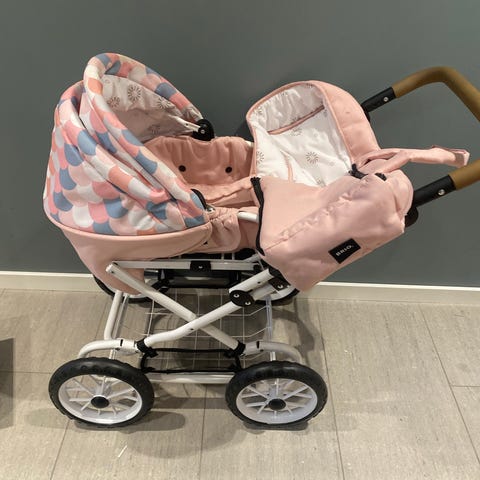 BRIO dukkevogn i rød farge, aldri ute og fremstår ubrukt.