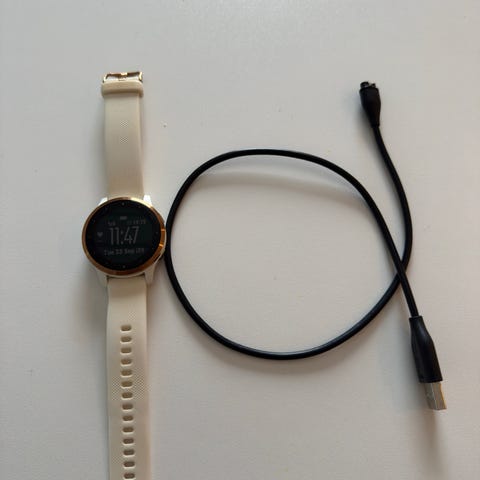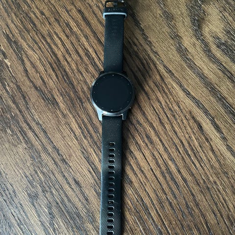 Garmin Vivactive 4S smartklokke med svart reim. Klokken har en kompakt design og er egnet for både trening og daglig bruk. Den tilbyr flere funksjoner for helseovervåking og aktivitetsmåling.
