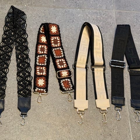 Rød bringebærfarget veskerem, 105 cm lang.