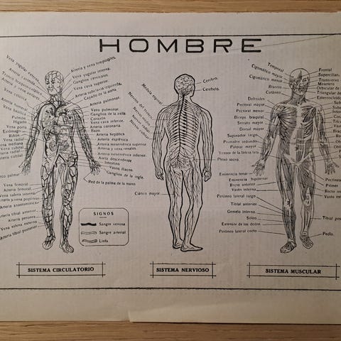 Gammelt kart over Athens, på spansk. 23x32 cm. Med bilder på den andre siden.