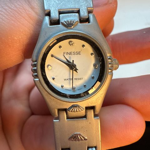 Vintage stil klokke med blomstermønster i bronsefarge, går på batteri. Kjedet er ca. 38 cm, selve lommeuret har en diameter på ca 4,5 cm.