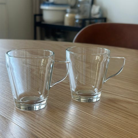 Bodum glasskopper med metallhåndtak. Kopper i klart glass med solid metallhåndtak for enkel bruk. Egnet for servering av varme og kalde drikker. Samlet 150 kr samlet.