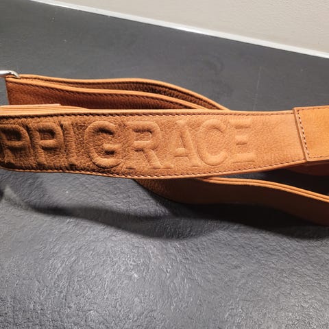 Kremfarget veskestropp, 58 cm lang.