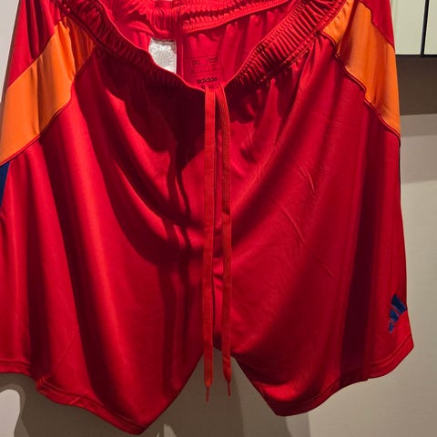 Adidas bukser i størrelse XXL for menn. Fargen er grå, laget av polyester materiale. Bukser har glidelåslommer og stripemønster på sidene.