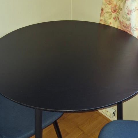 Bordet er sort med HPL (high -pressure laninat) topp og svart lakkerte ben. Kjøpt hos Bohus i 2020. Noen bruksmerker.