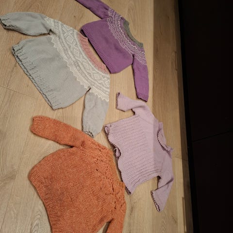Jeg selger et søtt retro strikkesett bestående av genser og lue. Settet er brukt av et barn..