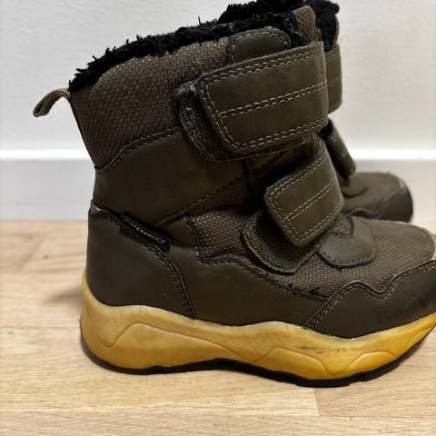 Molo barnestøvler i størrelse 27, unisex. Støvlene er laget for barn og har en farge som fremkommer som mørk i bildene. De har et robust yttersålemønster for godt grep. Innvendig foret for ekstra komfort og varme.