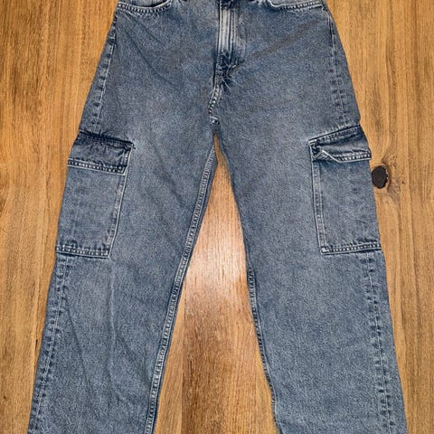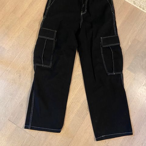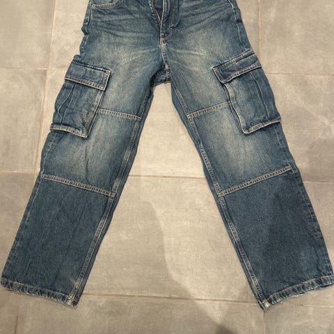 H&M Loose Fit denimbukser i svart farge, størrelse 158, designet for gutt. Laget av denimmateriale. Bukser med løs passform.