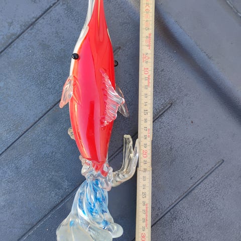 Nydelig fisk fra Murano. Denne har flere farger. Ser ingen skader. Kun en boble i glasset som er i glassmassen.