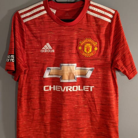 Adidas Manchester United fotballtrøye for barn i størrelse 11-12 år (152 cm).