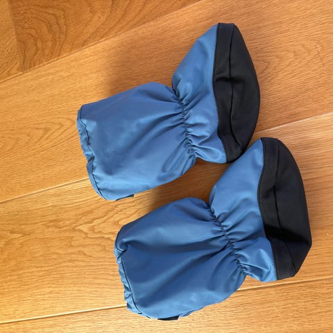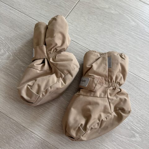 "Hold små føtter varme og tørre med disse vatterte vintertøflene. De er laget av et pustende, vanntett materiale og har en vanntett innleggssåle for ekstra beskyttelse mot slaps. Snøringene ved anklene holder dem sikkert på plass."