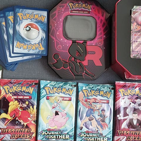 Pokemon Tin Box Team Rocket Det er en blanding av mesteparten av de i boksene, som er nytt høst 2025, også noe fra 2023 2024 selges 1299 og kan sendes + 76 om 2 tin bokser, +140 om 3 bokser, den siste er tom. Det er ca minst 500 kort uten å ha telt de nøyaktig