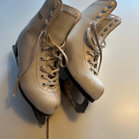 Dita Andre skøyter i størrelse 35 for barn. Skøytene er hvite og egner seg for barn som bruker denne størrelsen. Skøytene har tradisjonell snøring og metallblader.