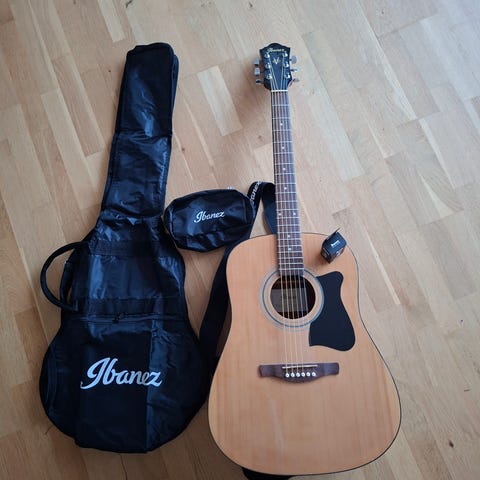 Kjempebra Ibanez svart akustisk gitar med innebygd tuner ,selges i veldig god stand.