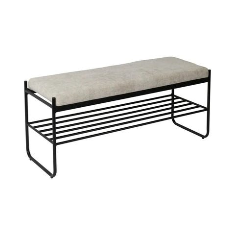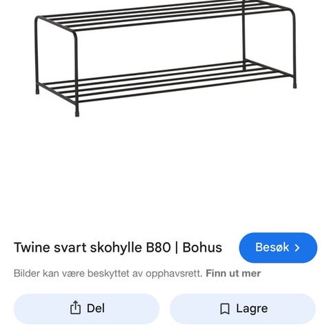 Skohylle i pulverlakkert metall med 2 hyller. Høyde mellom hyllene 15 cm. Frihøyde under hyllen 17 cm.