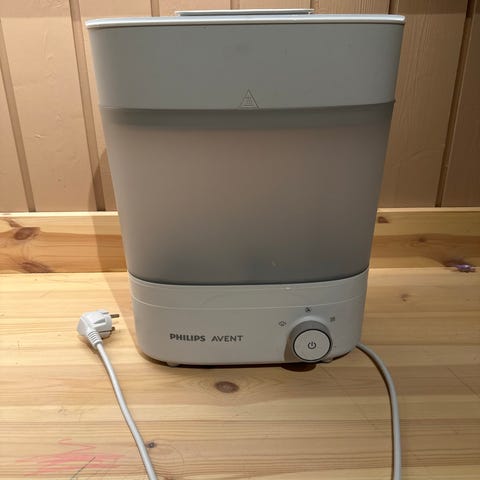 Sterilisator for sikker rengjøring av tåteflasker, smokker og pumpeutstyr.