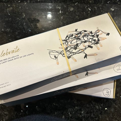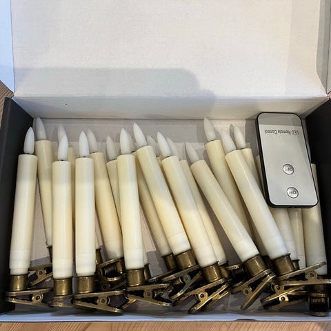 2 fulle pakker og en som bare er to stk i. Lysene bruker aa batterier. Brukt i noen år. Medfølger fjernkontroll i alle pakkene.