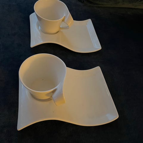 Krus og frokostasjett kjøpes