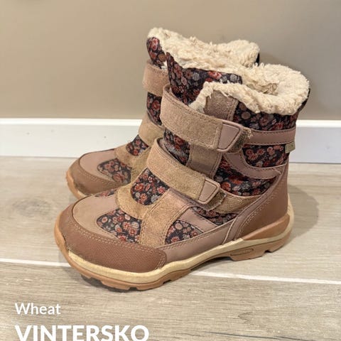 Nydelige sko fra Wheat. I skinn med tex og ullfôr. Modellen heter Timian og fargen mener jeg er dry cly. Helt nydelige sko! Kun brukt til pent noen få ganger. Har fått noen skjolder i skinnet foran, ellers fremstår de så og si som nye. Nypris var 1299,- Sender gjerne. Røyk-/dyrefritt hjem.