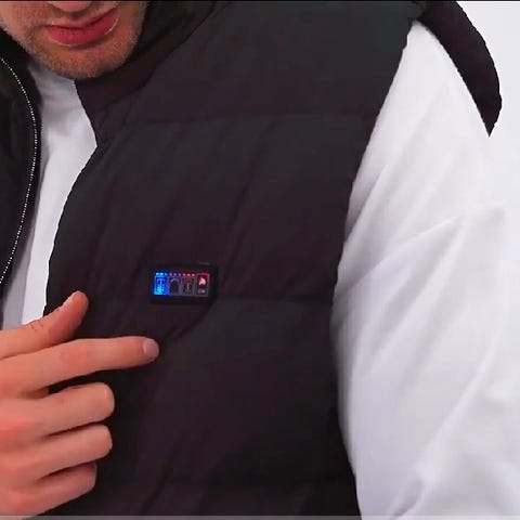 Vesten har totalt 6 varmesoner (3 foran på vesten og 3 bak), styrt av to tilstøtende brytere plassert på brystet.