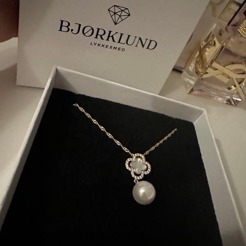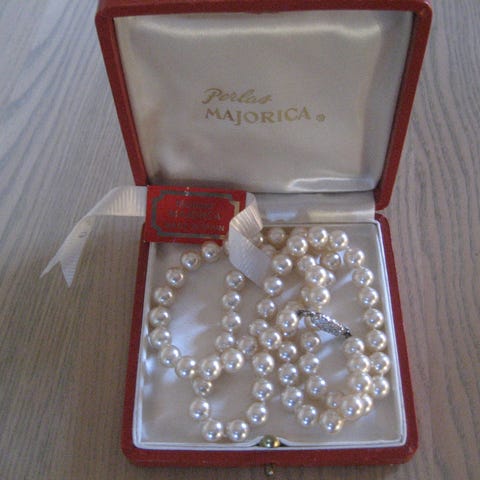 Majorica perlekjede 65 cm langt (dvs ca 32 når det er lukket).
