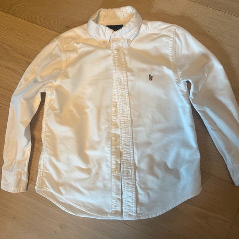 Ralph Lauren skjorte i rosa farge, laget av 100% bomull. Skjorten har knapper foran og er designet med klassisk krage. Størrelse 6 tilsvarer 116-122 i følge chat gtp.