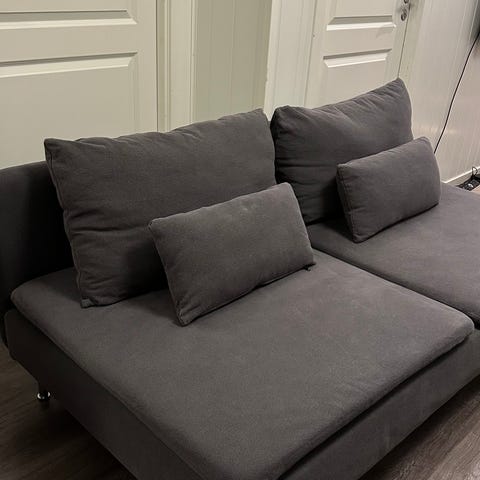 Selger meget pent brukt 3-seter m/sjeselong. Fargen er mørkeblå og sofaen er nyrenset. Her er det fortsatt veldig mye god sofa igjen.