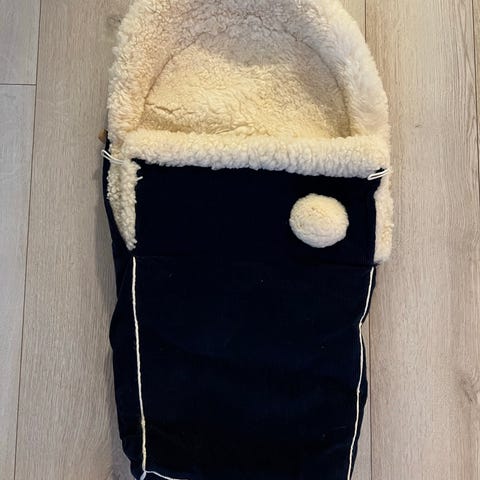 Selger en pent brukt vognpose i deilig og varmt saueskinn. Kan hektes på ryggen til vogna.