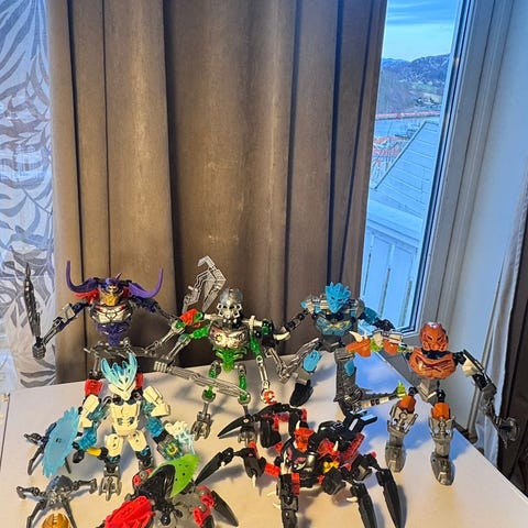 LEGO Bionicle kjøretøy med detaljerte deler og bevegelige elementer. Settet inkluderer en figur som kan plasseres i kjøretøyet, som har flere rør og våpendetaljer. Passer for samlere og byggere som er interessert i LEGO Bionicle-serien.