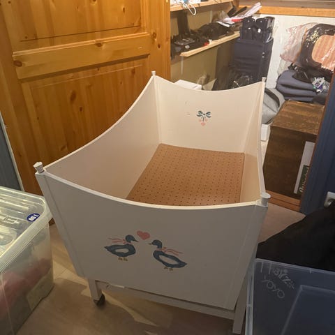 Heimelaga stellebord med to gode hyller for barneklede.