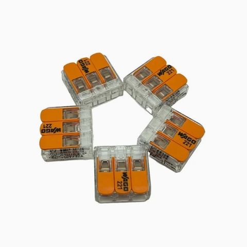 Eske med 30 stk Wago 3pols rekkeklemmer, 221-613, "ny type"