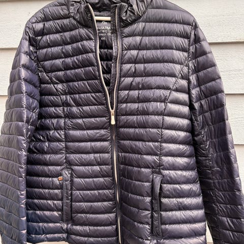 Svart vinterjakke, ca. 89cm lang fra PM. 70% dun og 30% fjær.