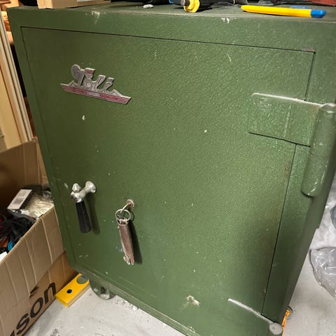 Brannsikker safe med kode og nøkkel. Kan festes i gulvet. H 29, b 38,5, d 32.