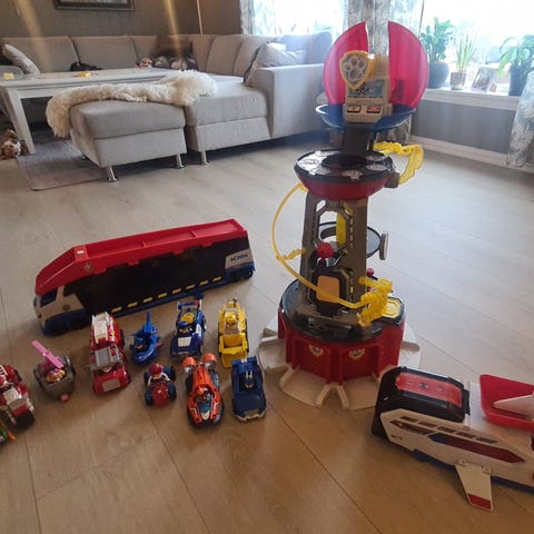 Vi selger stor Paw Patrol-pakke til billig penge. Alt til 200kr. Må hentes, sender ikke.