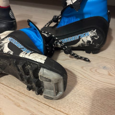 Gir bort et par blå Madshus langrennsski til barn. Dette er treski med Rottefella-bindinger. Lengde: 107 cm