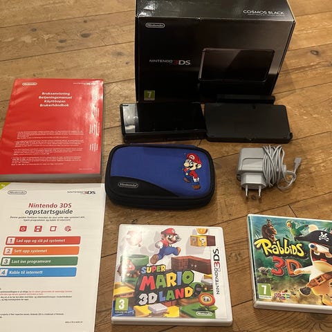 Nintendo New 3DS XL spillkonsoll med Super Mario Maker 3DS og lader