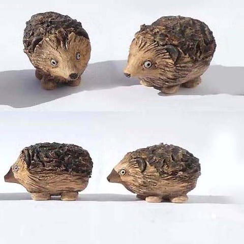 Keramikk piggsvin dekorasjon i blå farge. H: ca 5 cm/B:ca 6.5 cm.