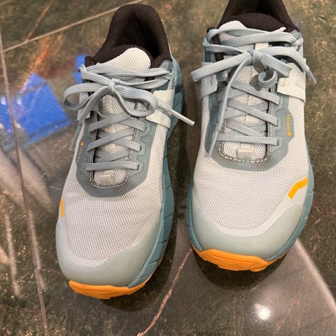 Disse kjempegode løpeskoene har mange små pigger, som griper godt i isen, selv for lette mennesker. (Jeg har tidligere hatt løpesko med pigger som har vært rett og slett glatte(!) fordi hver av piggene har vært avrundet og samtidig alt for brede i diameter til å trenge ned i isen).
