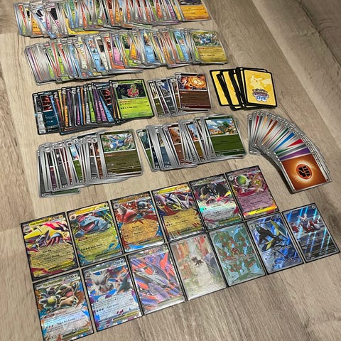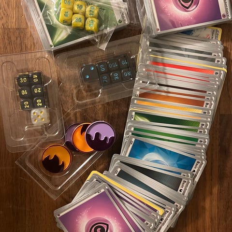 Pokemon pakke med kort, terninger,coins, pikachu, boks