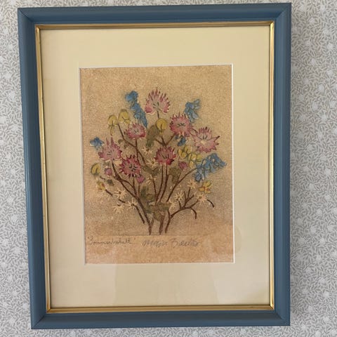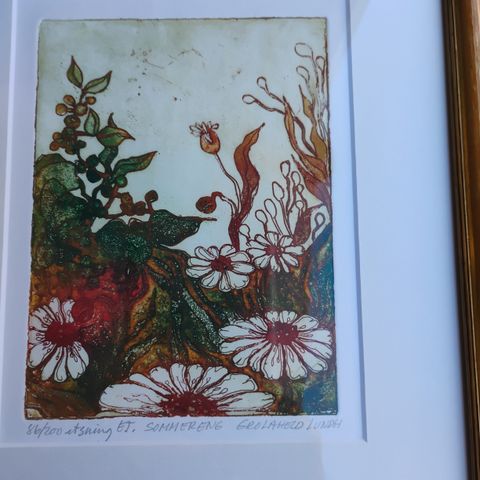 39 x 39 cm inkl ramme. Står en K på baksiden. Tror den kanskje er dansk? Kr 300