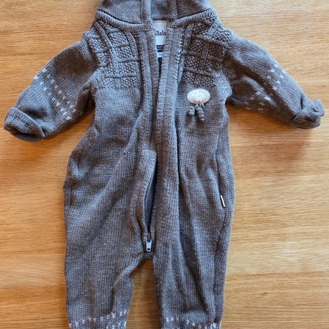 Lillelam barneheldress i størrelse 68 for gutt. Dressen er grå og laget i et materiale som gir komfort og varme. Den har glidelås foran for enkel påkledning og er designet for å passe små barn.