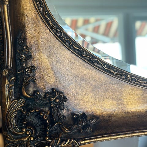 Vakkert innrammet speil i gull selges.