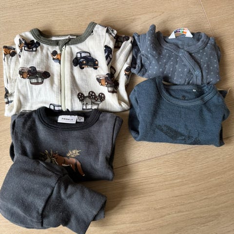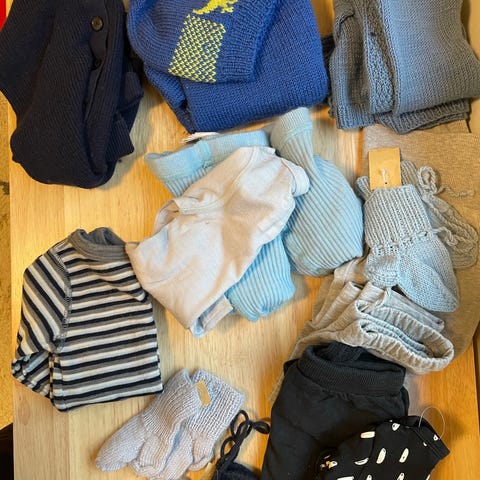 Klespakke med 3 ullbodyer og 5 bukser i ull.