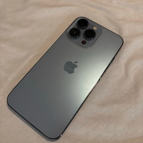 Apple iPhone 13 Pro mobiltelefon med 256 GB lagringskapasitet. Sierra blue lyseblå farge.