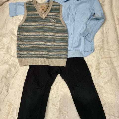 👔Et dresset sett med "Memini"skjorte, NEWBIE bukse og "MEMINI"vest i ull .