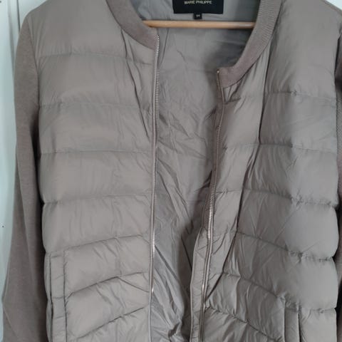 Ecru jakke i 59% merinoull, 27 % mohair, 9% Polyester og 5% nylon. Ikke brukt. Lengde 55 cm og brysrvidde 114 cm. Nypris 1299, selges 550 kr .Kan sendes med Helthjem